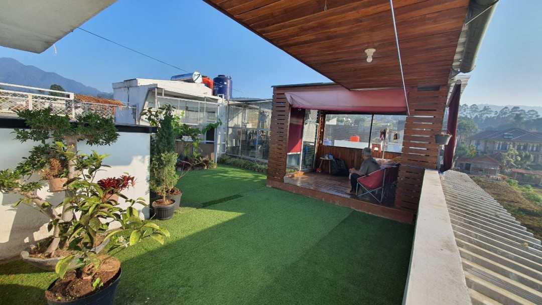 - Top roof seluas 50 m2 dengan view pegunungan Lembang nan asri dan jika malam hari terlihat city light.